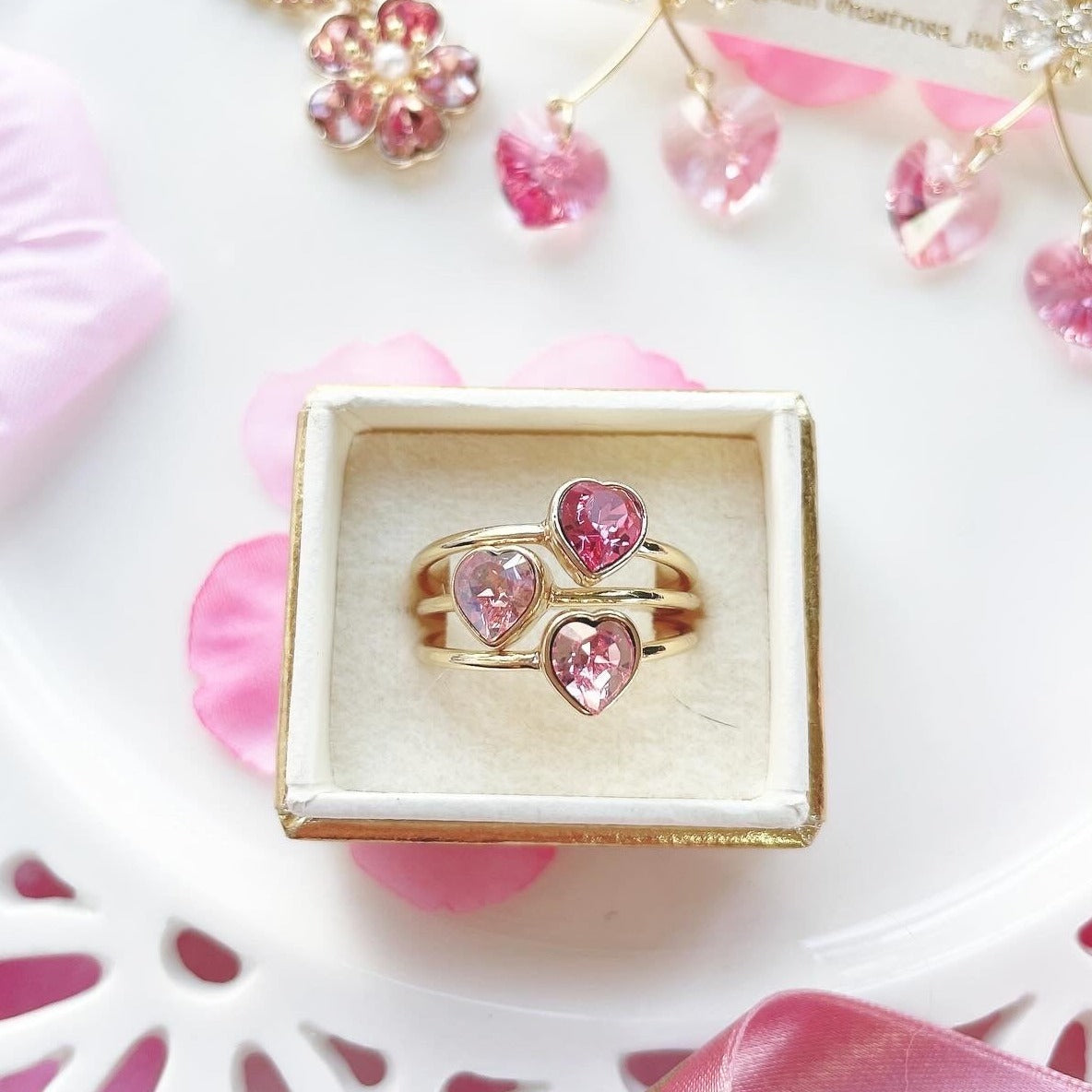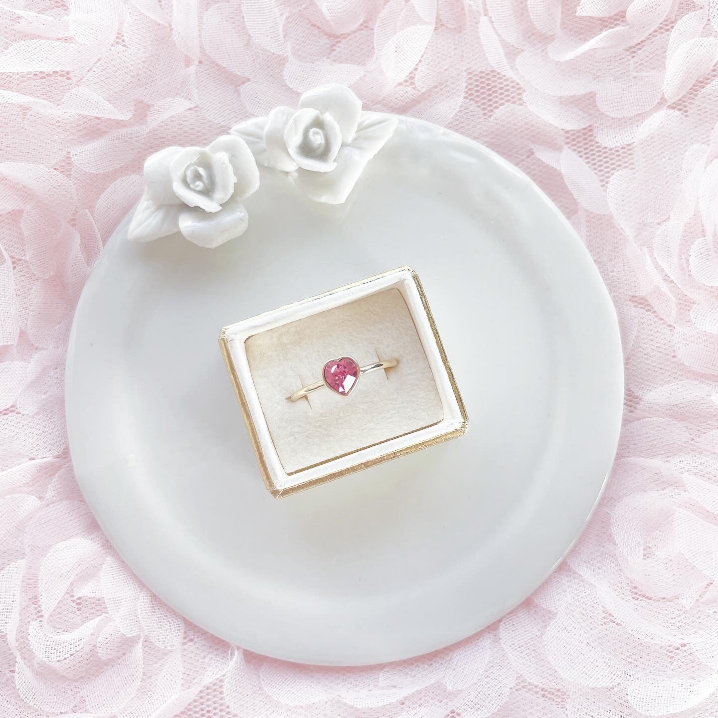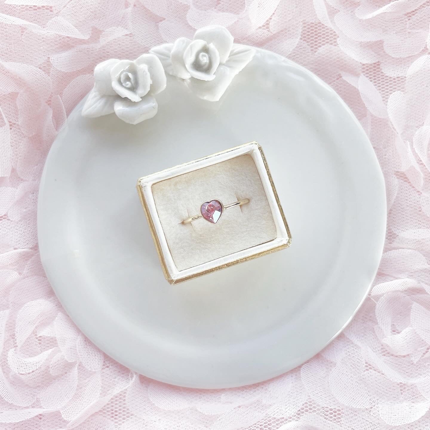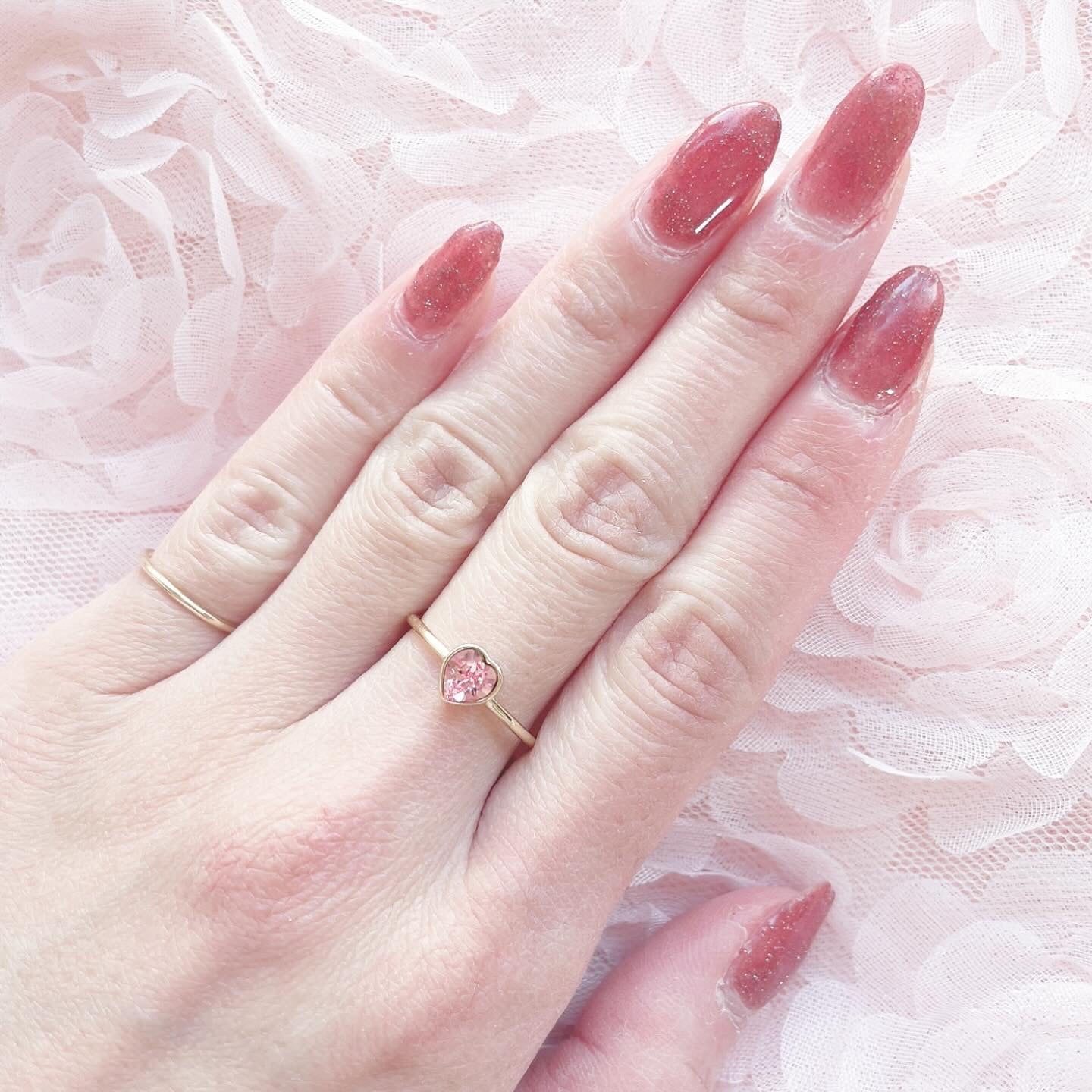 桜の花びらのような、ハートの一粒リング。