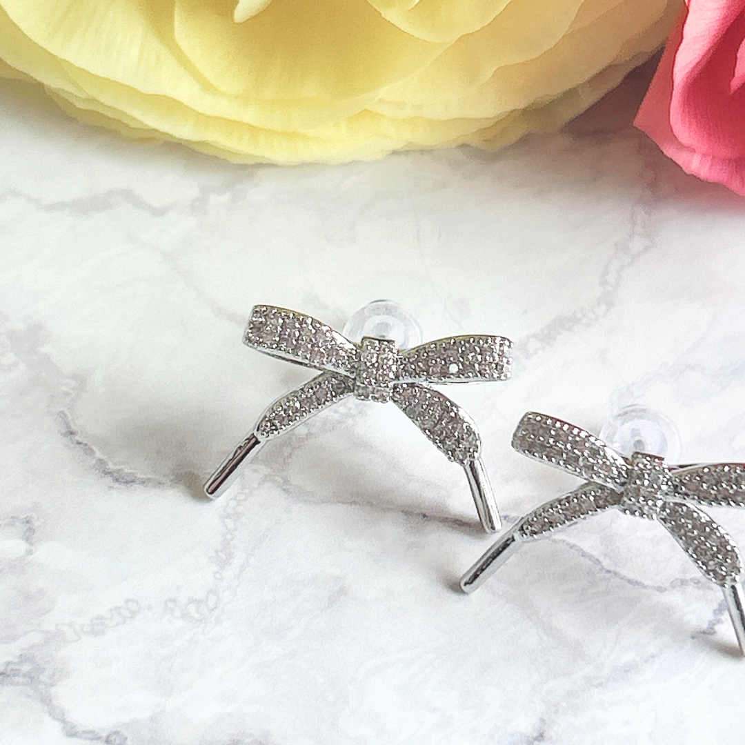 繊細なリボンが耳元で上品に輝くカジュアルリボンピアス。